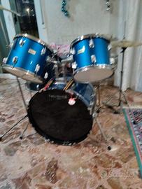 vendo batteria per adulti,completa di accessori,sgabello ,ciak,piatti del diametro di 40 e 35c.m,di colore blu elettrico poco usata.prezzo trattabile.