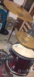 Batteria pace con set di piatti sebian modello sbr. Presenta solo una danno ovvero una pelle rotta sul tom piccolo.