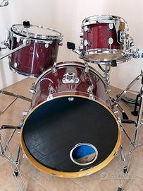 Pelle nuova sul lato battente di tom, timpano e lato risonante della cassa.