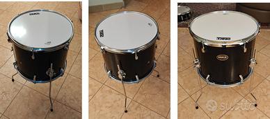 Grancassa 20x14", Timpano 14x12", Tom 12x9", Tom 10x8", Rullante 14x5.5"