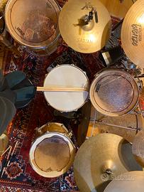 La configurazione standard avrebbe: cassa, rullante (che è atomico!), 2 tom e 1 timpano.