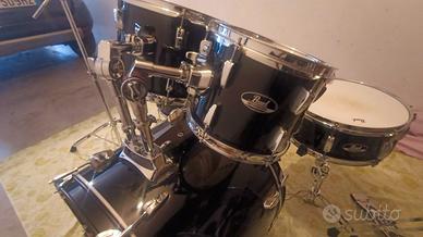 Batteria Pearl nera, usata pochissimo, composta da 8 elementi, hit-hat (charleston), Crash, Ride, Timpano, due Tom, Cassa, Rullante, in ottime condizioni, con imballo originale, vendo per inutilizzo.