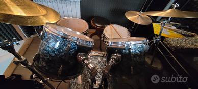 Batteria in ottime condizioni e Set composto da 5 pz: cassa 22" tom con ISS tom con ISS timpano rullante Pelli semi nuove 1 set di piatti Sabian