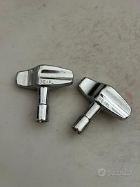 Rullante, 2 tom e un timpano, sgabello originale Pearl, chiavi originali Pearl e un leggio.
