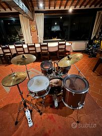 Vendo per inutilizzo Batteria Pearl Export Standard colorazione Grigio-Argento, acquistata nel 2017 ancora in ottimo stato; le pelli sono state cambiate 6 anni fa, ma la batteria è in inutilizzo dal 2024. Nella batteria sono compresi i muffle per ridurre il suono, facilmente removibili, e nel prezzo è compresa la campana, il tamburello a sonagli e il leggio.Non faccio spedizioni, siete liberi di venirla a vedere quando volete, posso offrire disponibilità nel consegnarla direttamente a casa a patto di costi aggiuntivi. Prezzo della batteria trattabile. LO SGABELLO È DIFETTOSO, PERTANTO È ASSENTE.