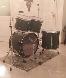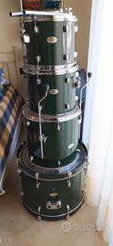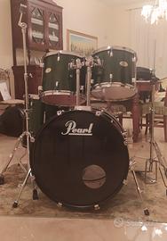 Vendo batteria Pearl Forum colore verde foresta, misure 22-12-13-16, compreso di asta hi-hat ed un asta piatto dritta.