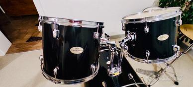 Incluso: supporto doppio tom su cassa, gambe timpano, stand rullante, stand piatto dritto, stand charleston con pedale, piatto Pearl CX-300 Crash/Ride 18”.
