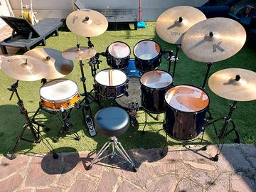 (piatti, pedale, sgabello e rullante Tamburo color legno visibili in foto NON sono in vendita, usati solo come display)