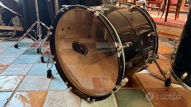 DIFETTI: Meccanismo per la cordiera del rullante bloccata ma facilmente riparabile con dei pezzi di ricambio. Tom 3 (14") con il meccanismo per tenere una delle tre gambe rotto (anch'esso facilmente riparabile).