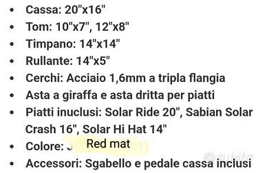 Batteria pearl Matt red acquistata ad aprile 2025 (fattura visibile). utilizzata un paio di volte (purtroppo mia figlia non la suona) è praticamente nuova! compresa di scatole originali. è possibile visionarla. in dotazione ci sono anche le sordine Evans del valore di 40€, + sgabello.
