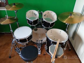 batteria pearl roadshow completa con aggiunto un Pad silenzioso.Batteria praticamente nuova, usata sì e no per 3 ore.Spedizione a carico acquirente.
