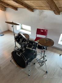 Batteria in ottime condizioni disponibile anche con piatti Sabian. Manca il braccio per il piatto da 51 cm Custodia per i piatti compresa