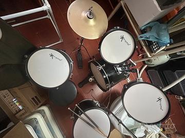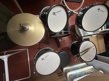 Batteria acustica professionale per bambini che iniziano ad avvicinarsi al mondo delle percussioni, comprende grancassa completa di pedale , rullante, charleston, due tom, tom da pavimento, piatti , seggiolino. Essendo per principianti (bambini/ragazzi) le dimensioni sono adeguate all’età