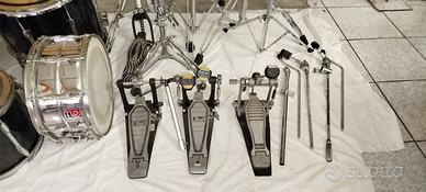 Batteria vintage fine '80 "PREMIER APK made in England" con tutti gli accessori visibili in foto (pedali heavy duty Pearl+ Yamaha, Steel Snare Drum Premier 1036, etc... inclusi). Buone condizioni generali (da ripulire un po' dalla polvere) valore da usato ben oltre i 1200euro, vendo causa inutilizzo a 700€. Ritiro di persona (chiaramente impossibile spedire).