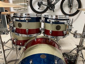 Cassa vergine 22x20 tom10x8 tom12x8 timpano 16x13 fusti betulla bubinga, cerchi superiori die cast. Rullante Tama slp acero 13x8. Hardware professionale mix di Pearl xdrum Tama mapex. Asta charleston serie economica e un asta giraffa economica. Doppio pedale xdrum doppia catena con custodia dedicata. Piatti professionali charleston e 1 crash18 bosphorus e splash Sabian 10 aax. Restanti piatti china ride crash orion. Custodie morbide per fusti e per hardware (custodia cassa con cursore cerniera da sostituire e un po’ strappata internamente)custodia rullante morbida professionale con imbottitura. Sacca piatti e bacchette signature travis barker. accessori porta bacchette per asta, morsetto charleston automatico. Per altre informazioni scrivetemi. Non smembro. Vendo per inutilizzo.