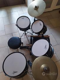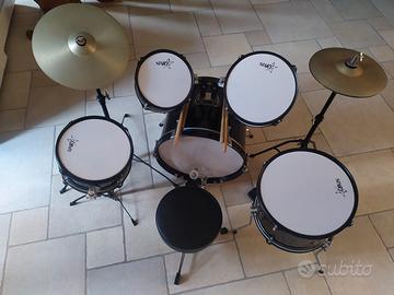 Batteria junior professionale acquistata in uno store di strumenti musicali , non si tratta di un giocattolo. Disponibilità anche dello scatolone da imballaggio originale ( vedi foto),dove sono ripartite anche le dimensioni.