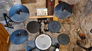 Batteria V-Drum Roland HD-1 da studio, comprensiva di: monitor, sgabello, tappetino antirumore, istruzioni video e cartacee. Usata pochissimo, perfettamente funzionante e in ottime condizioni.