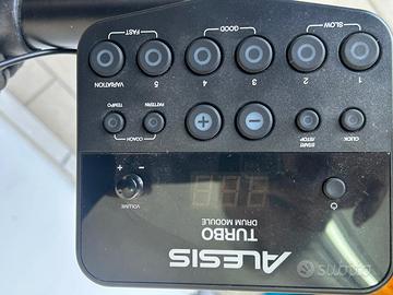 Vendo per inutilizzo Alesis Turbo Mesh Kit in condizioni eccellenti. Pelli mesh (a rete) per un feeling realistico e massima silenziosità. Inclusi pedali, modulo con 120 suoni, bacchette e cuffie. Accetto offerte ragionevoli