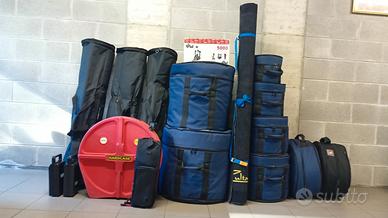 Completa di hardware (Sonor, Tama, DW, Ahead)e Custodie (morbide + Hard case ø 22" per i piatti)