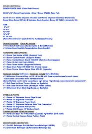 Nelle foto allegate c'è la lista dettagliata di tutto il materiale che compone il drumkit