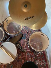 (PREZZO TRATTABILE) MAPEX BATTERIA ACUSTICA TORNADO DARK RED. con charleston (basix drums) aggiuntivo e un piatto. (PREZZO TRATTABILE)
