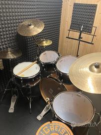 Batteria Tama con set piatti Turkish e Splash, acquistata nuova: batteria e set piatti turkish separatamente a poco più di 1400 euro, la batteria è tutta ancora in ottime condizioni, utilizzata con attenzione per circa un paio d'anni.