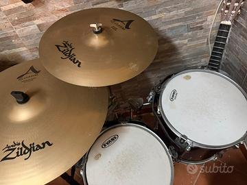 Vendo batteria Tama compasta da rullante tama superstar 2 tom e 1 timpano con grancassa no forata, con set di piatti Avedis custom Zildjian Spash da 12, 2 crash da 14 e da 16 e un medium ride da 20 pedale dw 2000 compreso le borse dei piatti
