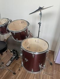 batteria quasi nuova in buone condizioni solo 1 pezzo mancante (crash) del resto e tutto presente compresi bacchete e pannelli per diminuire il rumore. Sui tamburi ci sono dei piccoli segni causati dalle bacchette ma niente di troppo evidente. PREZZO TRATTABILE