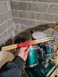Vendo kit completo Batteria Tamburo T5 colore verde. Utilizzata poche volte come approccio a questo strumento, è come nuova.
