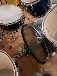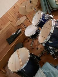Batteria professionale marca Pearl completa, usata 3 mesi, completa di sgabello regolabile, leggio e set di 6 bacchette. Valore d’acquisto 650€