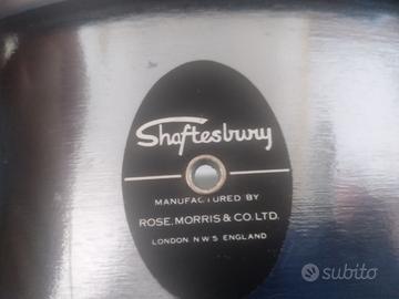Batteria vintage marca Shaftesbury inglese inizio anni 70 originale composta da: rullante, 2 toms, timpano e cassa tutti i pezzi montano pelli sabbiate seminuove in ottimo stato. Gli attacchi dei toms alla cassa sono quelli originali. La batteria non ha subito nessuna modifica ed è originale in legno di betulla ed ha un'ottimo suono molto versatile e adatta a diversi generi musicali dal rock al pop al jazz. Con la batteria vendo le custodie, un pedale Yamaha per Hit Hat, un pedale per cassa della Tama compreso di battente, un'asta per piatti sempre Yamaha tutti in buono stato e perfettamente funzionanti.Il prezzo totale comprende la batteria più l'hardware descritto. Il presso richiesto è tutto compreso batteria e hardware