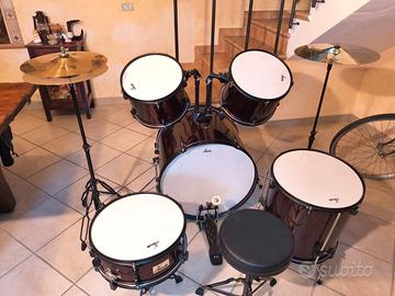 batteria in ottimo stato usata non piu di 3 volte visibile previo appuntamento concordato a isola del liri (frosinone) x questo oggetto non effettuo spedizione la batteria al momento su amazon costa circa 337 euro quindi chiedo cortesemente di astenersi nel proporre offerte al ribasso, e intavolare trattative sul prezzo che non e'trattabile i miei feedback sono la vostra tranquillita di acquisto e di serieta nelle vendite on line ! di seguito allego descrizione completa amazon del prodotto resto a completa disposizione x qualsiasi informazione aggiuntiva desideriate chiedermi DESCRIZIONE E CARATTERISTICHE DELLA BATTERIA ⬇️⬇️⬇️⬇️⬇️⬇️⬇️⬇️⬇️⬇️ Fusti in pioppo acusticamente pregiato con pellicola speciale, hardware nero a doppio rinforzo in 5 pezzi: Supporto rullante, pedale e hi-hat (entrambi a catena), supporti piatti a doppio rinforzo, sgabello regolabile in altezza Dimensioni fusti: 20" BD, 10", 12", 14" TT, 14" SD, piatti per esercizio composti da hi-hat 14" e crash-ride 16" Scuola di batteria gratuita, bass drum: 20"x16", rullante: 14"x5,5", tom: 10"x8", tom: 12"x9", floor tom: 14"x14" Incl. 1 paio di bacchette 5B, 1 dettagliata guida al montaggio e scuola di batteria