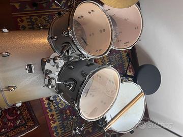 Ciao! Vendo la mia batteria yamaha gigmaker perchè non la uso più da anni dopo essermi trasferita all'estero. La batteria ha quasi 10 anni. E' stata usata abbstanza fino al 2018 poi è rimasta a casa dei miei ed è stata usata un paio volte l'anno. Ha tre piatti, grancassa, rullante, 2tom, e il timpano. Uno dei due tom è rotto quindi va sostituita la pelle che si è strappata. Non va neanche il pedale del charleston, non penso sia rotto (forse è partita una vite) ma va aggiustato.