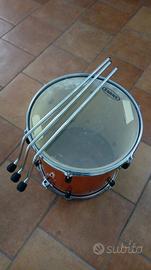 La batteria non presenta difetti a livello di meccaniche, le pelli dei tom sono usate parecchio e per una resa ottimale e per estetica andrebbero cambiate ma comunque mantengono bene l'accordatura.