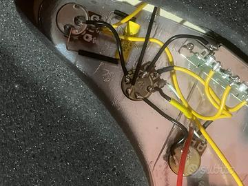 Battipenna pickguard precablato per chitarra. - Colore bianco crema. - Dotato di potenziometri per volume e tono. - Include viti e placca posteriore. Monta i pickup di una eko sg . Suono hard rock blues perfettamente funzionante