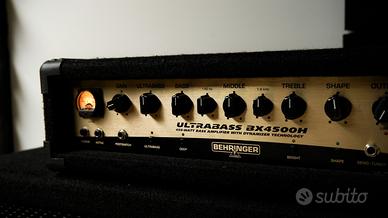 Vendo ottimo amplificatore per basso composto da testata Behringer BX4500H e 2 cabinet Bugera. Scambio con Cabinet AMPEG, o materiale di mio interesse.