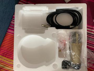 Articolo nuovo solo aperto, comprende scheda audio, cavo xlr maschio-femmina, cuffie e microfono a condensatore