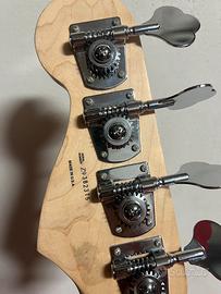 Basso praticamente nuovo Made in USA , corpo in ontano, un manico in acero moderno a forma di C con tastiera in palissandro a 20 tasti e paletta con decalcomania anni '70, ponte Badass Il con sellette scanalate, circuito tonale Greasebucker, battipenna in pergamena a tre strati e finitura laccata in nitrocellulosa satinata, piccolo segno sul corpo dovuto al contato col reggibasso. Strumento impeccabile vendo per esubero
