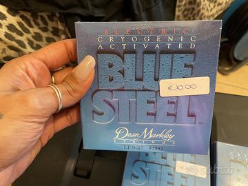 3 Mute di corde Blue Steel 9/42 per chitarra elettrica, rimasugli di negozio perciò tutte nuovissime e ancora imballate, vendibili anche singolarmente a 10 euro a muta