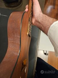 La chitarra, comprata quasi nuova, è stata parzialmente carteggiata della sua finitura Glossy con un incidente di percorso con sverniciatore a caldo che ha causato una bolla, ora stuccata con bicomponente e carteggiata.