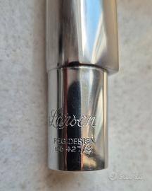Raro bocchino vintage in metallo BERG LARSEN per sassofono tenore. Apertura: 85 Camera: 2 Lunghezza: M Include legatura e copribocchino