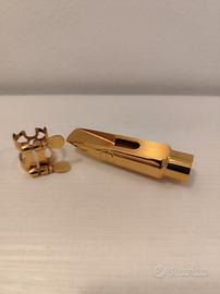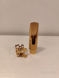 Bocchino per Sax Alto in metallo con legatura, apertura 7, come nuovo usato pochissimo, vendo per regalo sbagliato. Venduto senza scatola e senza cap.