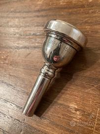 Per trombone o bombardino o flicorno tenore e baritono. Nuovo mai usato, solo annerito dal classico ossidarsi dell’argento se non si maneggia.