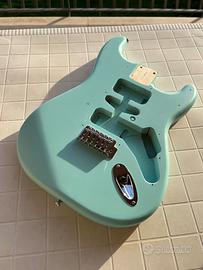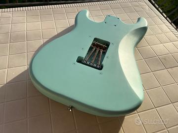 Vendo body squier colore Daphne Blue opaco. In ottime condizioni salvo il leggero segno visibile in foto. Corpo in legno di pioppo e misura dello scasso standard fender. Compreso di ponte con leva e ingresso jack. Consegna a mano a L'Aquila o spedizione
