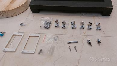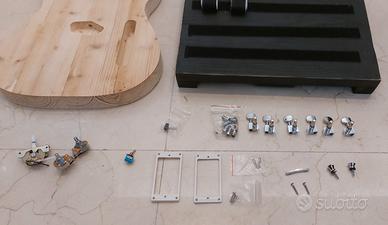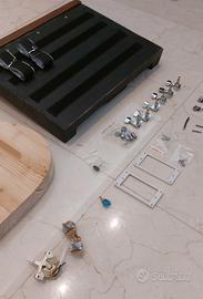 Body Telecaster artigianale in pino/abete – semilavorato da completare, Pedaliera con velcro e componentistica per chitarra.