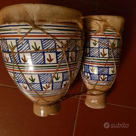 bonghi africani in ceramica e pelle altezza 25 diametro grande 19 piccolo 12 piccola imperfezione base grande come foto