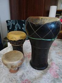 3 bonghi in terracotta e pelle di animali di fattura artigianale anni 70 dell Algeria in buono stato da collezione ma ancora è possibile suonarli.