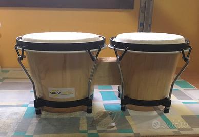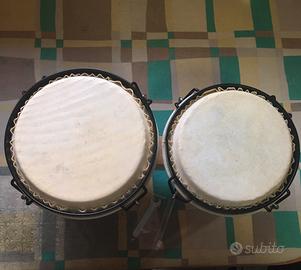 Coppia di bonghi in legno nuova, mai utilizzata e provvista di chiave per tirare le pelli (naturali). Diametri di 17 cm e 15 cm circa, altezza di 15 cm. Li vendo per inutlizzo