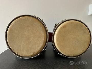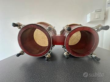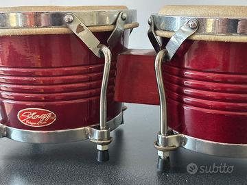 Bongo Stagg Rosso Brillante con pelli in buone condizioni e con un bel suono. Molto bello da vedere. Richiama come forma al LP Matador e Meinl Marathon ma molto piu maneggevole e leggero , ottimoncme bingo da studio e da mettere in vista
