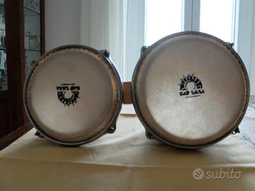 Coppia di bongos marca Club Salsa Percussion. Bellissima finitura in legno bicolore. Perfetti per chi vuole iniziare a suonare le percussioni o per jam session acustiche con gli amici. Le pelli e la struttura sono in ottime condizioni, come visibile in foto. #bongos #percussioni #strumentimusicali #clubsalsa #musica #tamburo